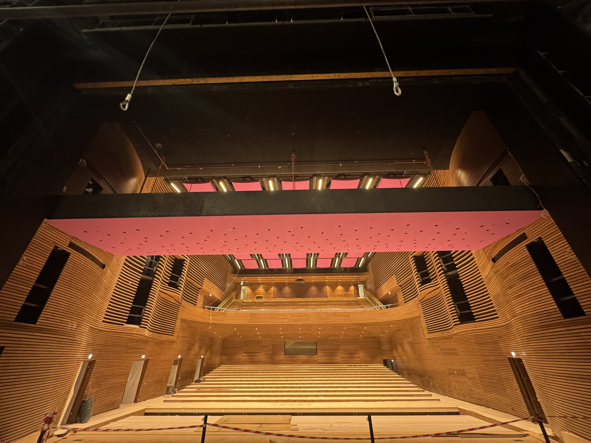Zur Ausstattung zählen u. a. eine große Drehscheibe, Transportpodium, Drehring, Orchesterpodium, Hubbrüstung sowie ein Anlieferungspodium.